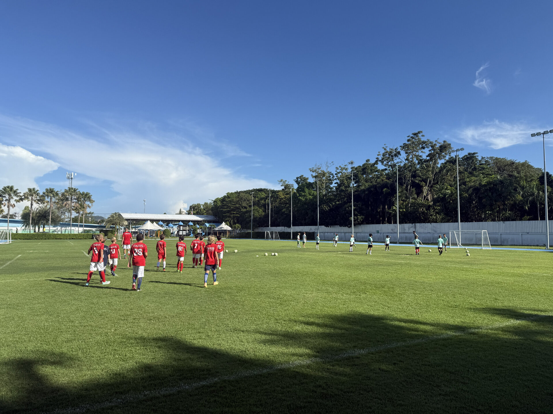 A standard FIFA pitch, measuring 45 x 90 meters (147 x 295 feet), designed for official matches and training.